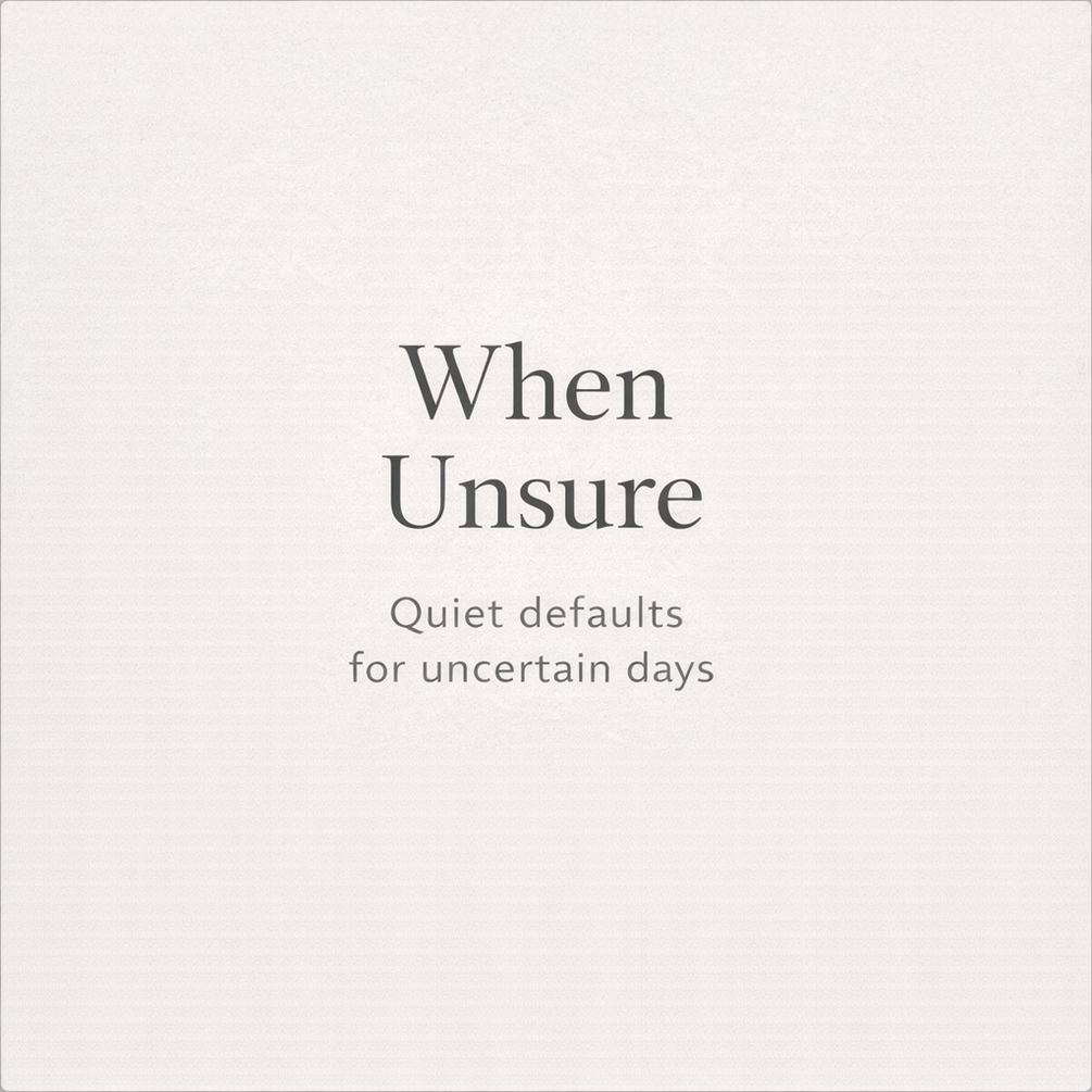 When Unsure is a small set of calm, borrowable defaults you can use when you don’t want advice, motivation, or optimization — you just want to choose something without spiraling.